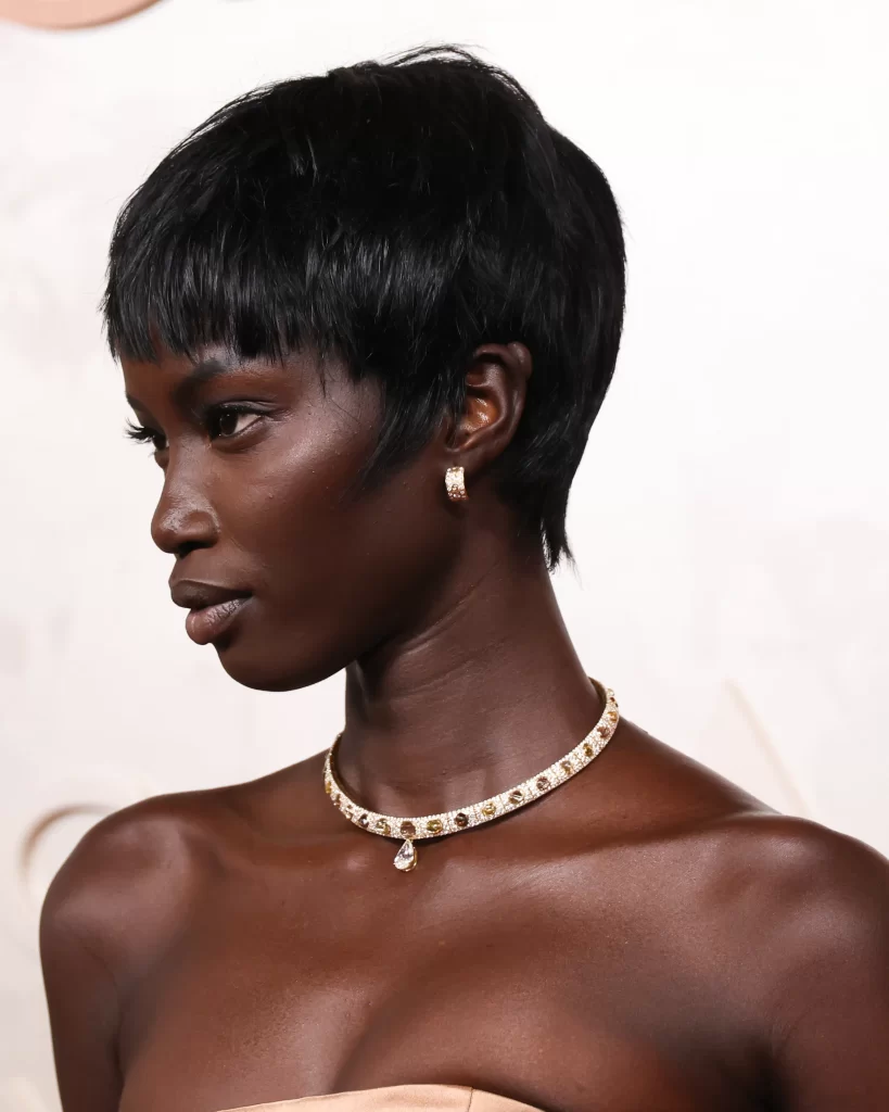 Candidata come Miglior Attrice, la star di Anora, Mikey Madison, ha optato per un look in stile vecchia Hollywood per portare fortuna. Madison ha indossato un abito Dior Haute Couture ispirato alla collezione Primavera/Estate 1956 del Bal à Paris. Ha impreziosito un’incredibile collana vintage di diamanti proveniente dagli archivi di Tiffany & Co. Realizzata tra il 1909 e il 1919, la collana in platino, iridio e diamanti presentava al centro un diamante taglio antico europeo del peso di 3,9 carati.