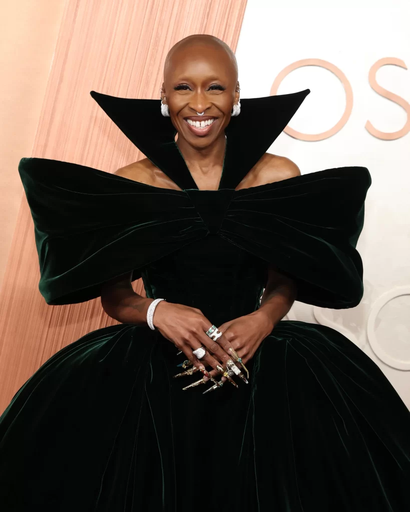 Cynthia Erivo, attrice co-star di Ariana Grande nel musical “Wicked” e candidata al premio Oscar come miglior attrice, ha lasciato il segno sul red carpet sfoggiando i gioielli della Love in Verona Collection di Roberto Coin. Ha indossato un anello in oro bianco 18kt e diamanti, con un bracciale e orecchini abbinati.