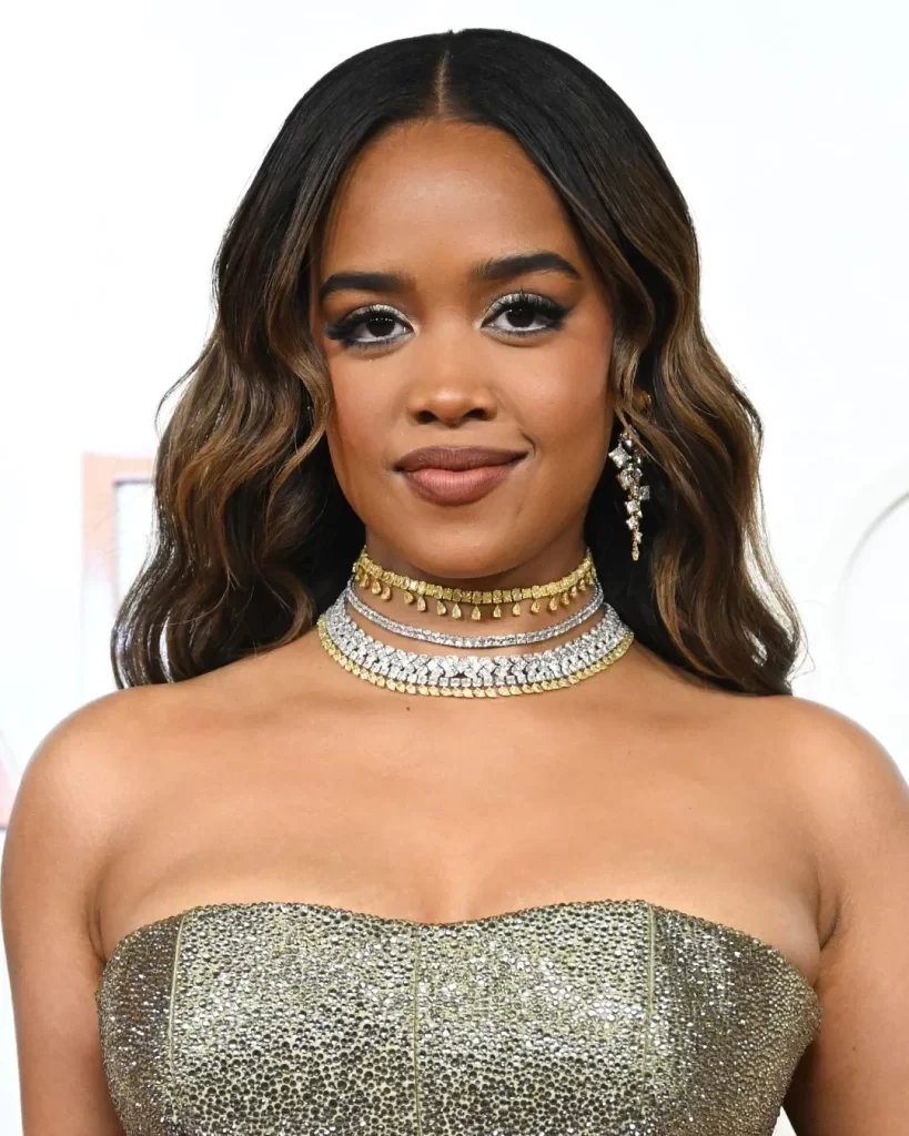 Coco Jones indossava un classico abito nero Coach personalizzato con splendidi orecchini di diamanti e un’imponente collana con diamanti taglio cuscino da 104 carati di Harry Kotlar. Secondo il marchio, “Utilizzando solo i diamanti NATURALI più rari per i nostri gioielli, Harry Kotlar mantiene gli standard più rigorosi nella lavorazione delle fonti di diamanti”.