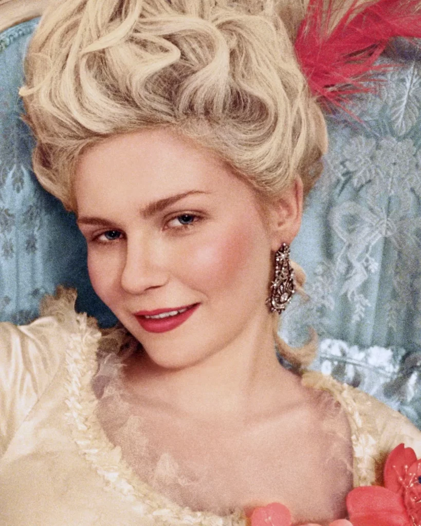 2006: Kirsten Dunst’s Diamond Jewelry in Marie Antoinette In 2006, director Sofia Coppola sunk her teeth into the tragic tale of Marie Antoinette, the last queen consort of France before the French Revolution. Reimagined into a frothy, pastel dream world of regal grandeur, the film overflows with pastries, anachronistic 18th-century Manolo Blahnik footwear, and $4 million worth of antique diamond jewelry from the New York boutique Fred Leighton. The high-fashion period drama sees Kirsten Dunst star as the titular teenage queen, who historically treasured her own jewelry collection. Showcasing the royal’s opulent and overindulgent lifestyle behind the gilded gates of Versailles, Dunst wears diamond feather brooches, diamond bracelets, and necklaces, with various pairs of drop earrings, like the 18th-century star and moon diamond chandelier earrings, totaling 25 carats.