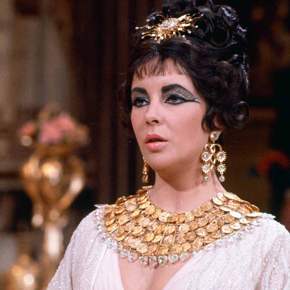 I gioielli d’oro di Elizabeth Taylor in Cleopatra (1963) L’industria ha molto da ringraziare per Cleopatra, da Liz & Dick all’iconico guardaroba della Taylor nel corso del film campione d’incassi. Joseff of Hollywood, il gioielliere dietro a molti dei più grandi film di Hollywood dell’epoca, ha fornito all’attrice pezzi come questa collana a pettine in oro placcato, gli orecchini chandelier e l’acconciatura.